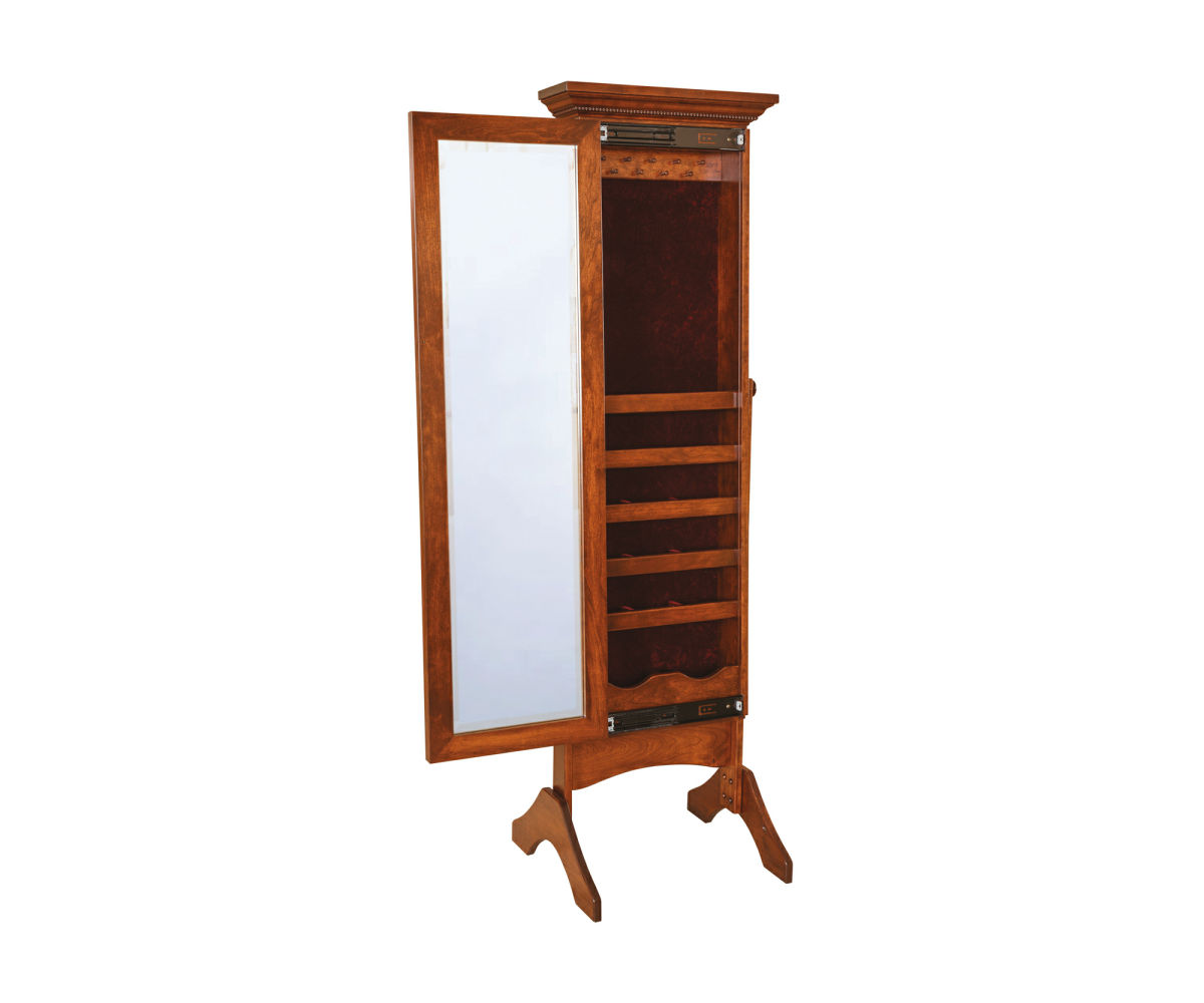 Features: • Door slides to show jewelry storage • Traditional molding is standard (shown)