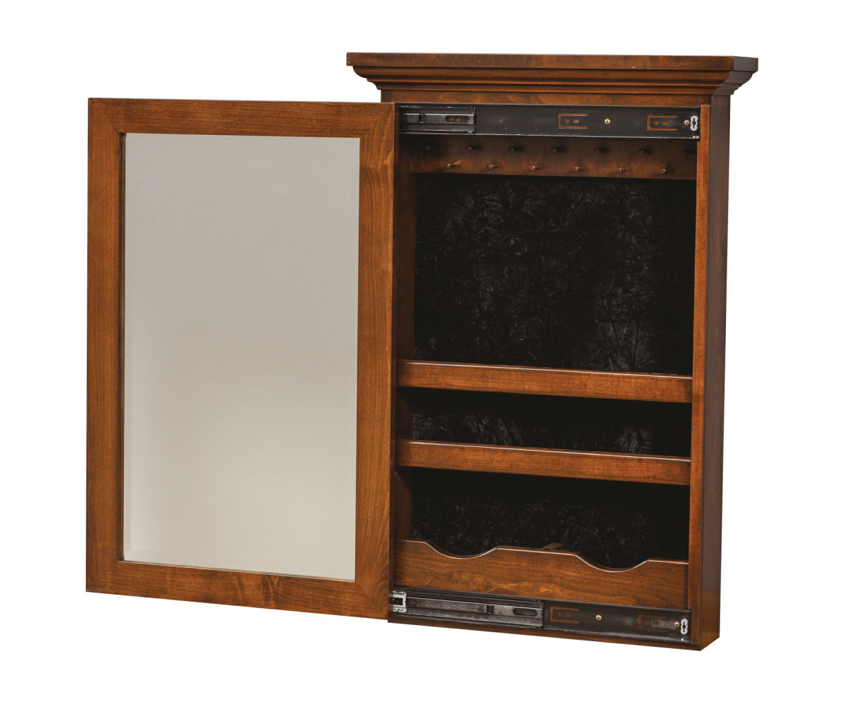 Features: • Sliding mirror to reveal jewelry storage • Traditional molding standard (shown)