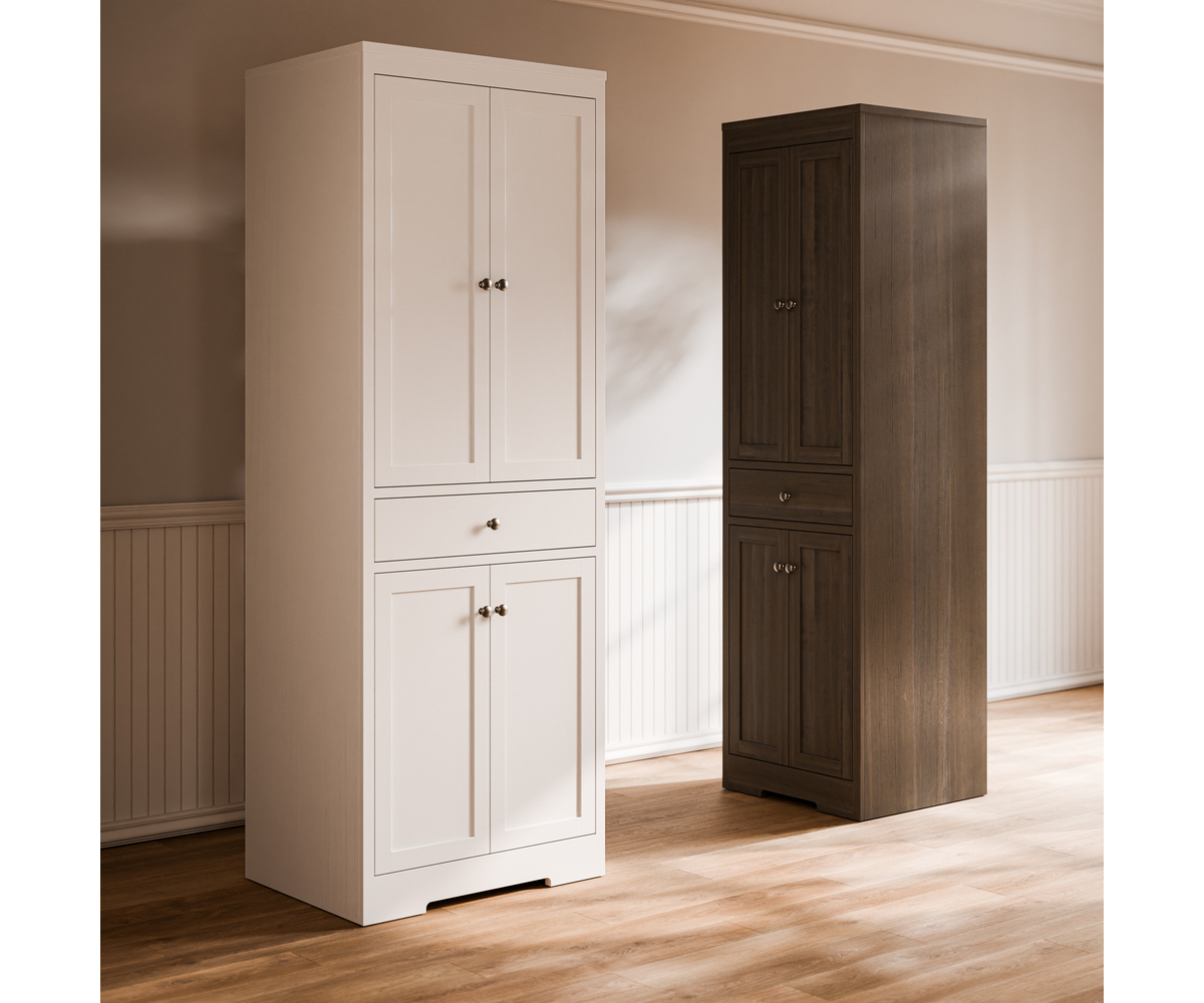 Features: • Four adjustable shelves • Dovetailed drawers • Full extension drawer slides