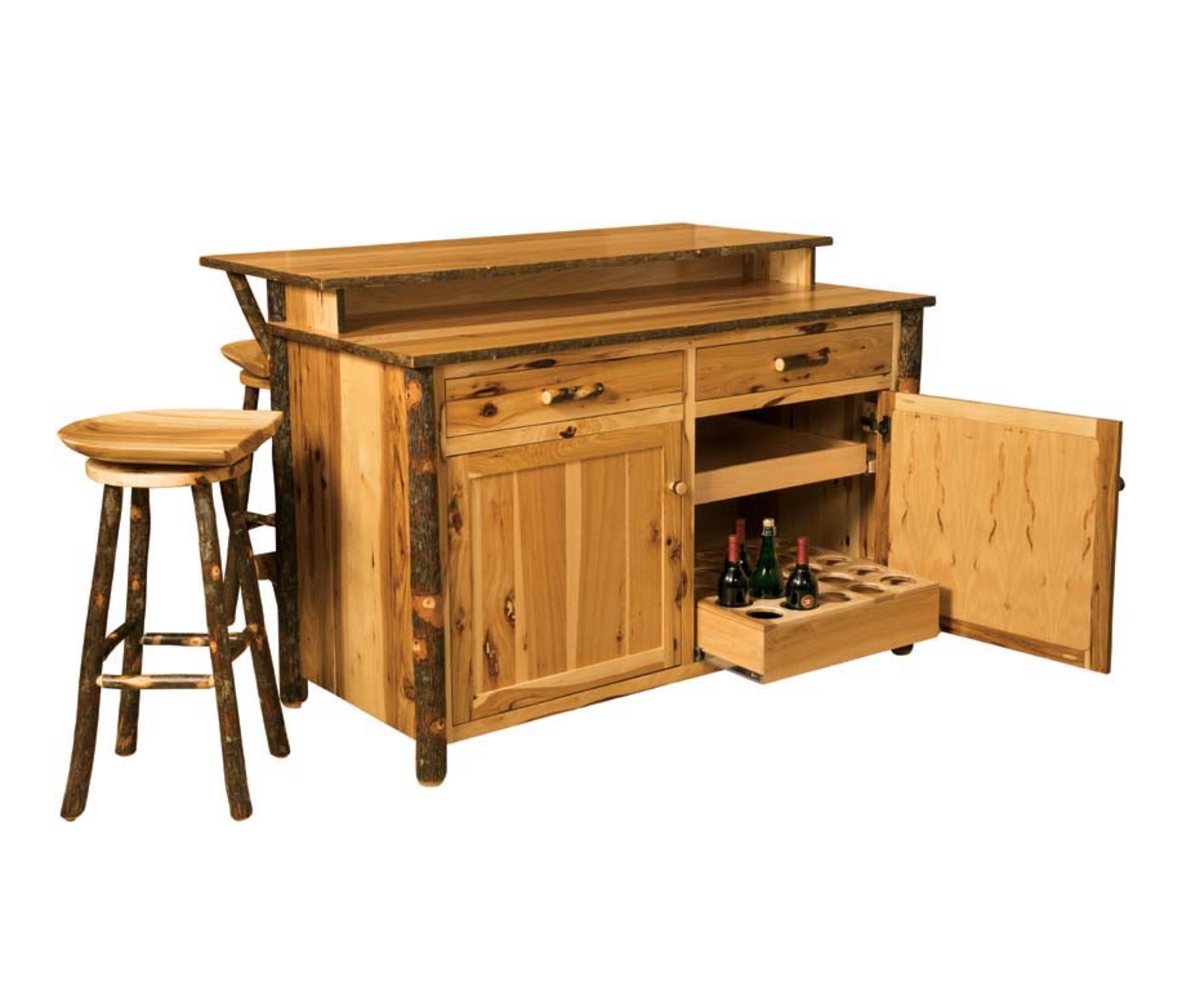 Features: • Dovetailed drawers • Full extension drawer slides • Pull out shelf above the wine bottle shelf • Pull out wine bottle shelf behind the right door • Pull out shelf behind the left door