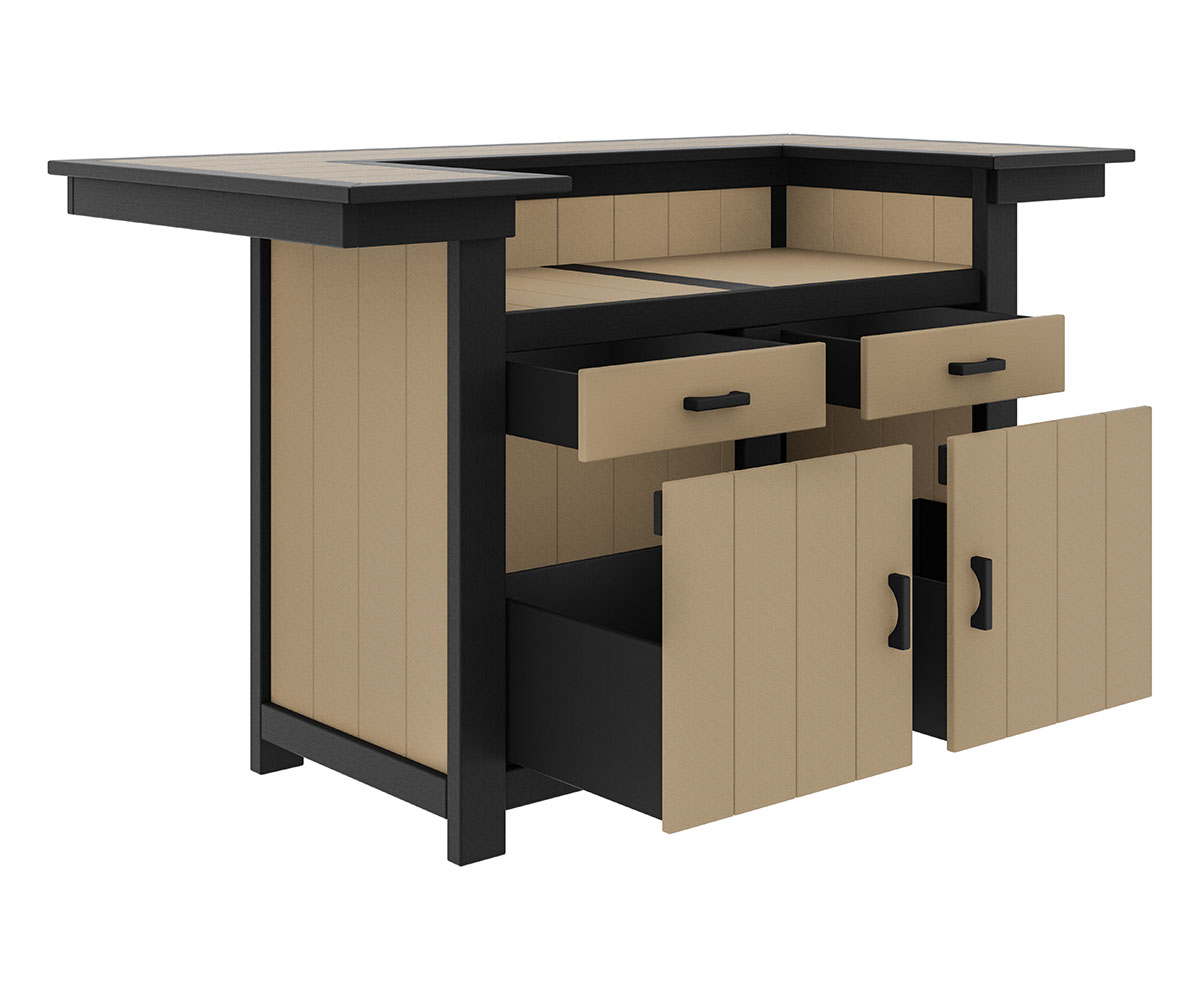 • Store patio items at your fingertips with these unique slideouts and drawers
