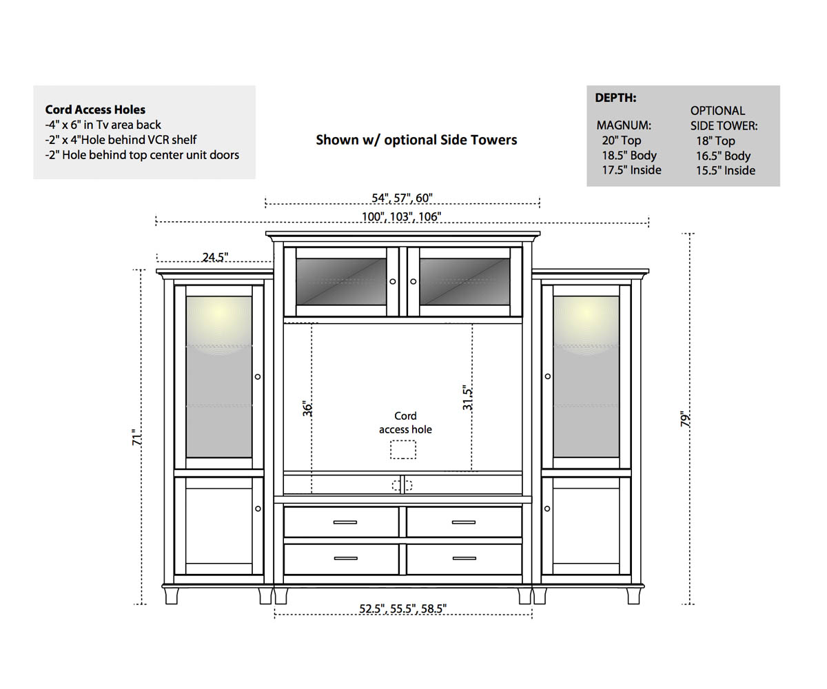 Overall: 106″W x 18½”D x 79″H