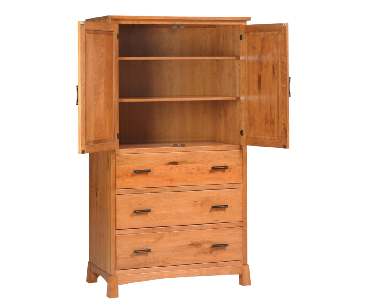 Features: • Two adjustable shelves behind the set of doors • Dovetailed drawers with ½” thick drawer bottoms • Full access under-mount soft close drawer slides • Made in the USA • Piece signed and dated by craftsman