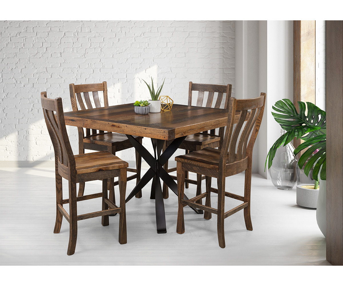 Options: • Also available in a 36″H counter height • Can be built with a round top