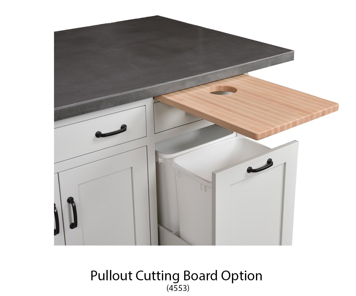 Options: • Slide out waste basket (4550) (shown) • Pullout cutting board above the waste basket • Also available with additional types and sizes of tops