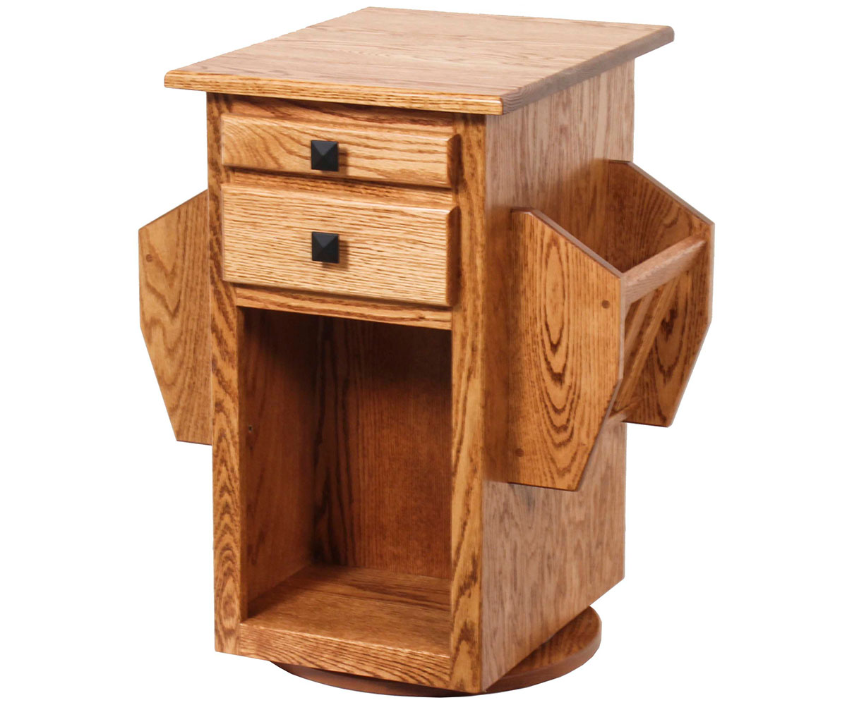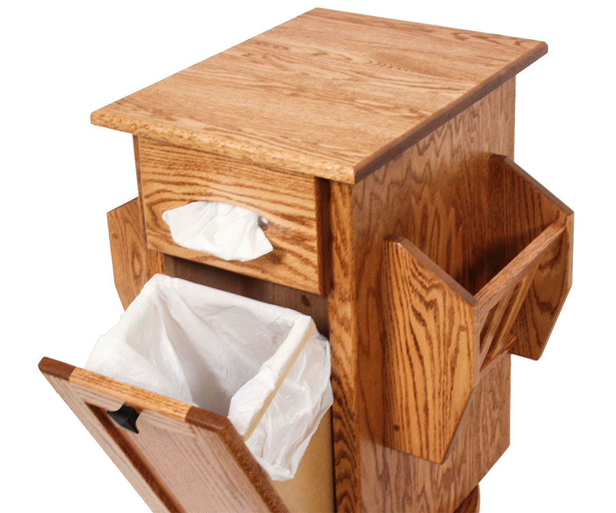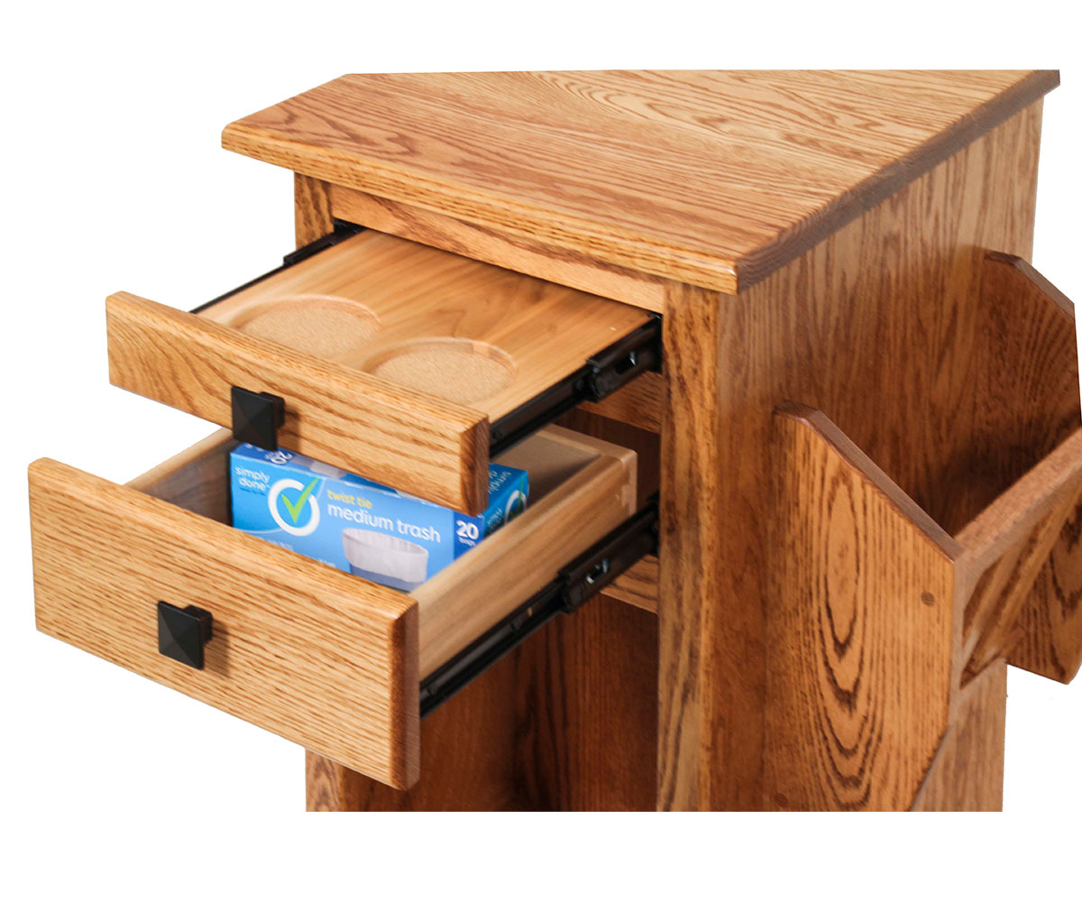 Features: • Dovetailed drawers • Pull out cupholder shelf • Magazine racks • Tissue holder • Tilt out trash bin