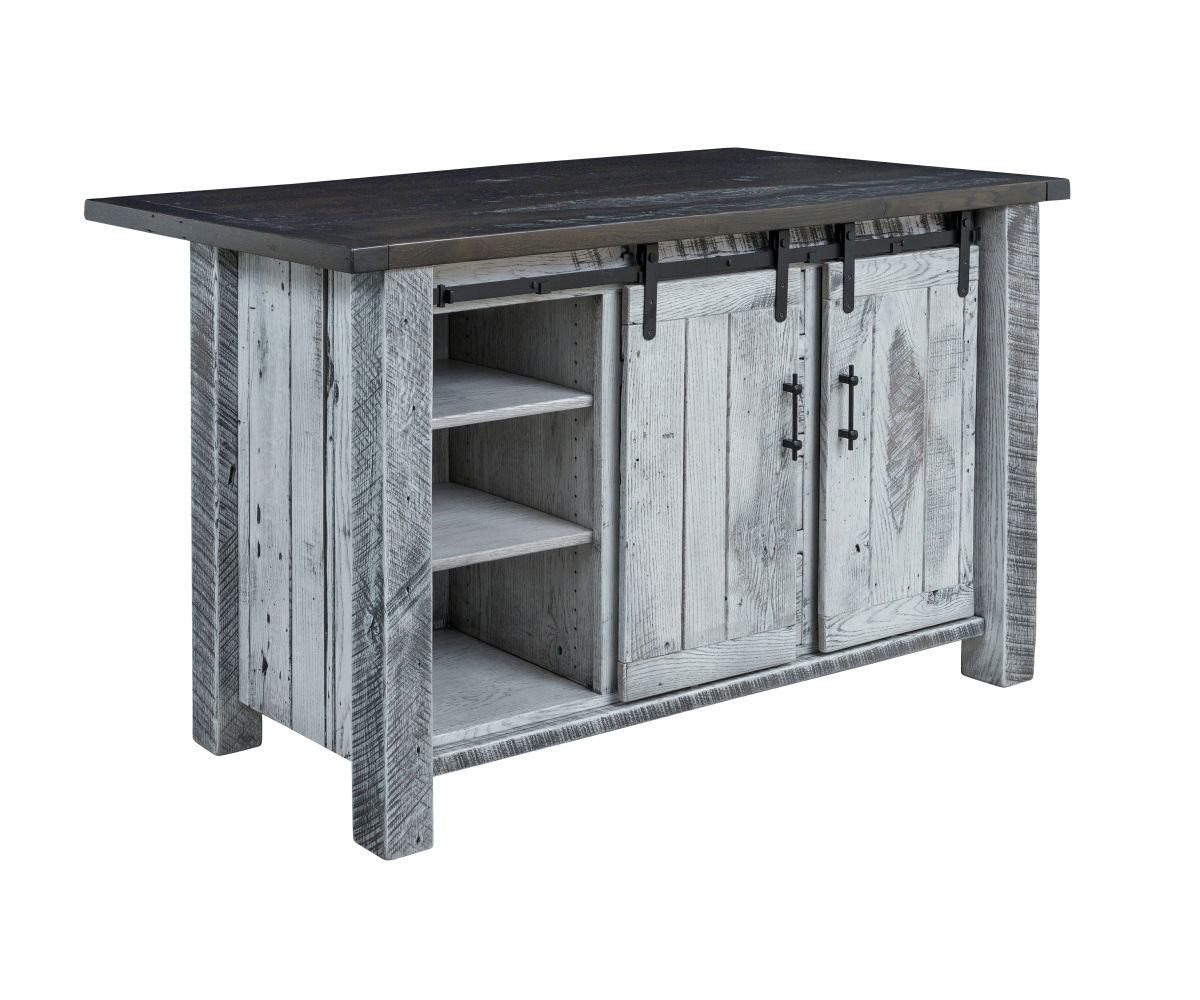 Features: • Rolling barn doors • Dovetailed drawers • Full extension drawer slides • Adjustable shelves behind each door