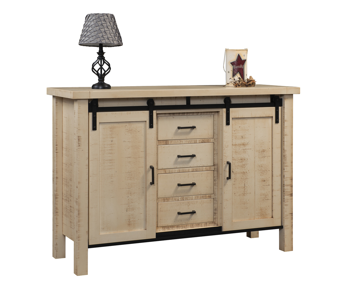 Shown With: Wood: Rough Sawn Wormy Brown Maple Stain: FP-7624 Pearl with FG-9079 Early Wheat Glaze Hardware: 55276-BBR (pull)