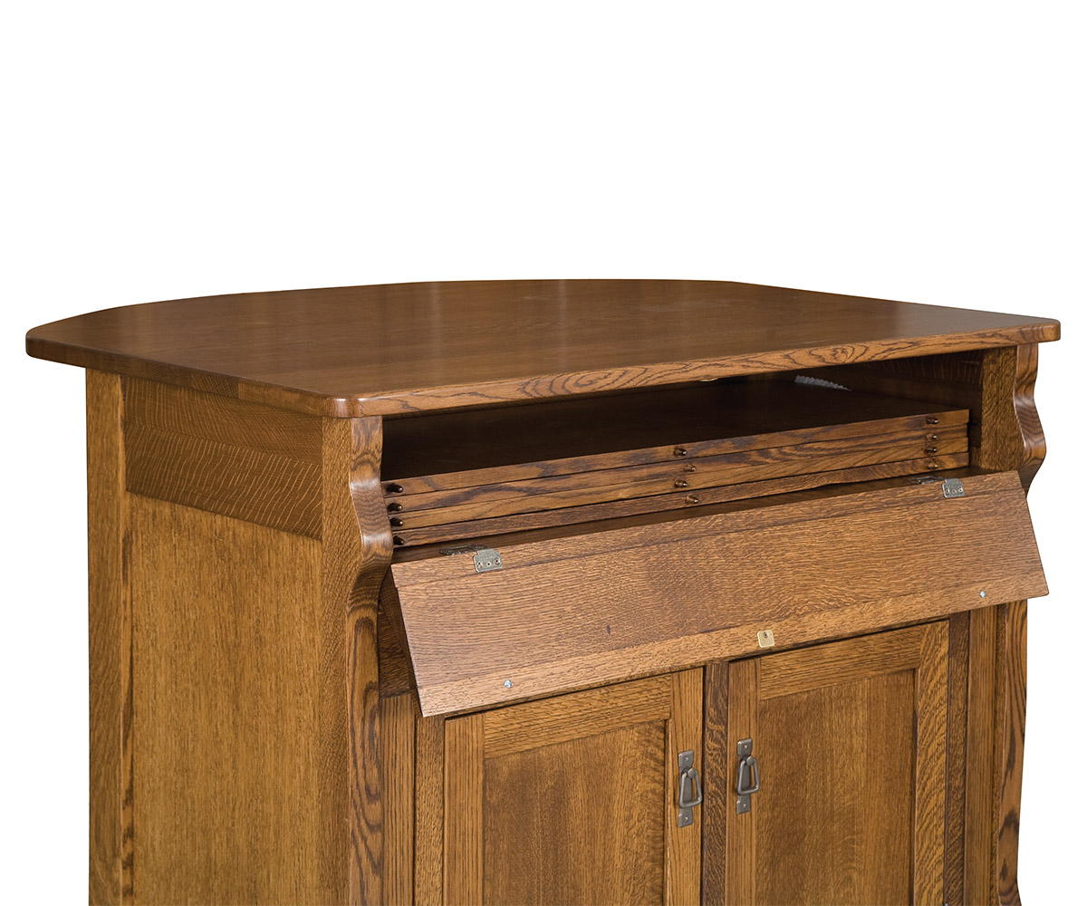 • Top tilt out opening stores the table leaves