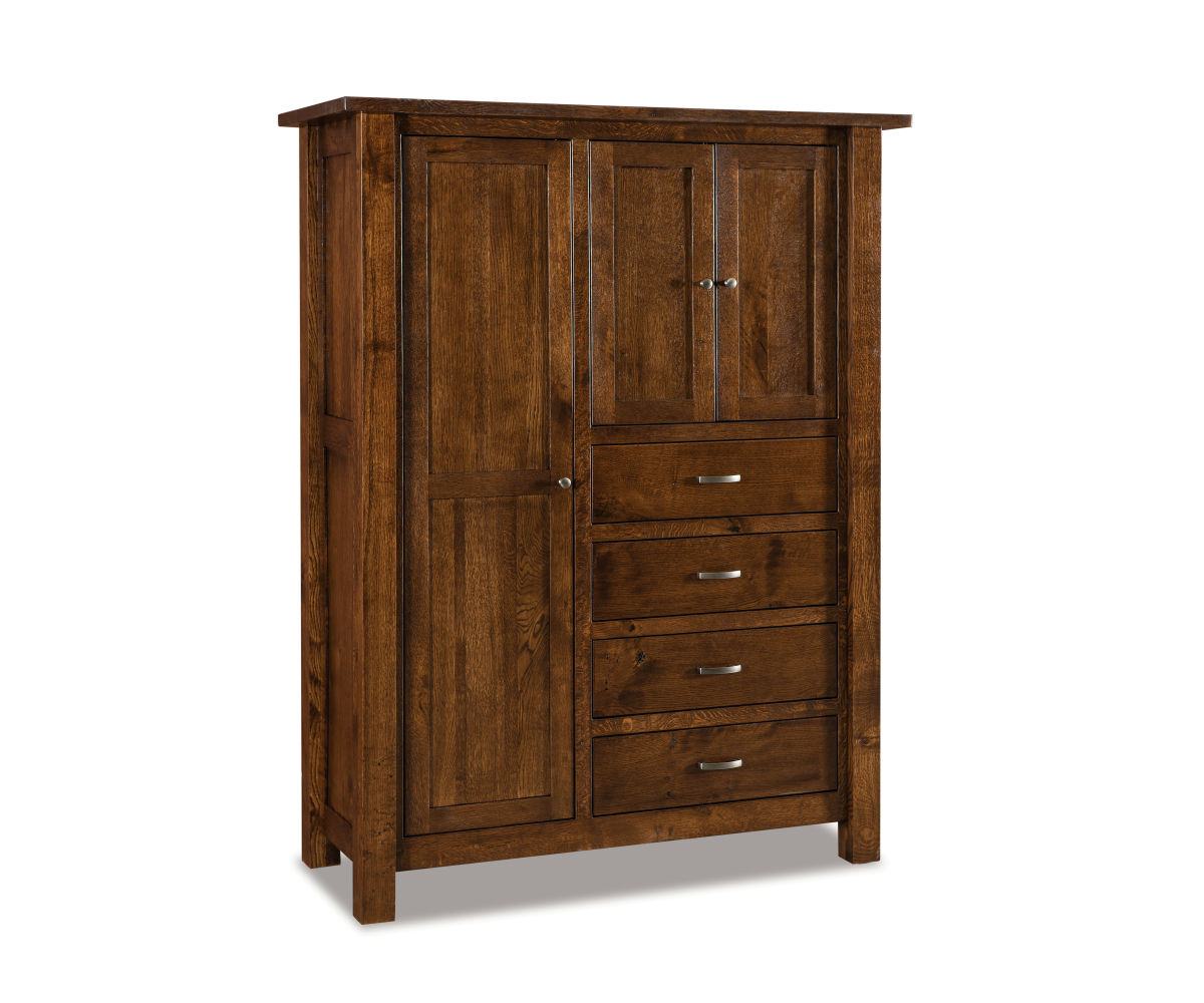Features: • 1¼” Solid wood top • Dovetailed drawer boxes • Full extension drawer slides • Four adjustable shelves • One adjustable clothing rod