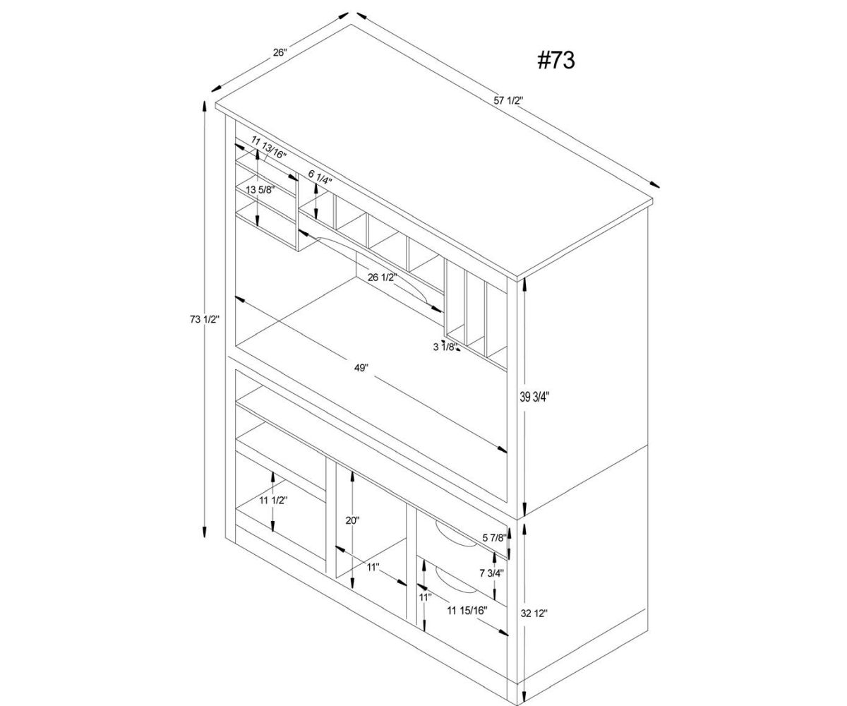 Dimensions: 57 1/2″W x 26″D x 73 1/2″H Monitor Opening: 26 1/4″W x 22 3/4″D x 23 3/4″H
