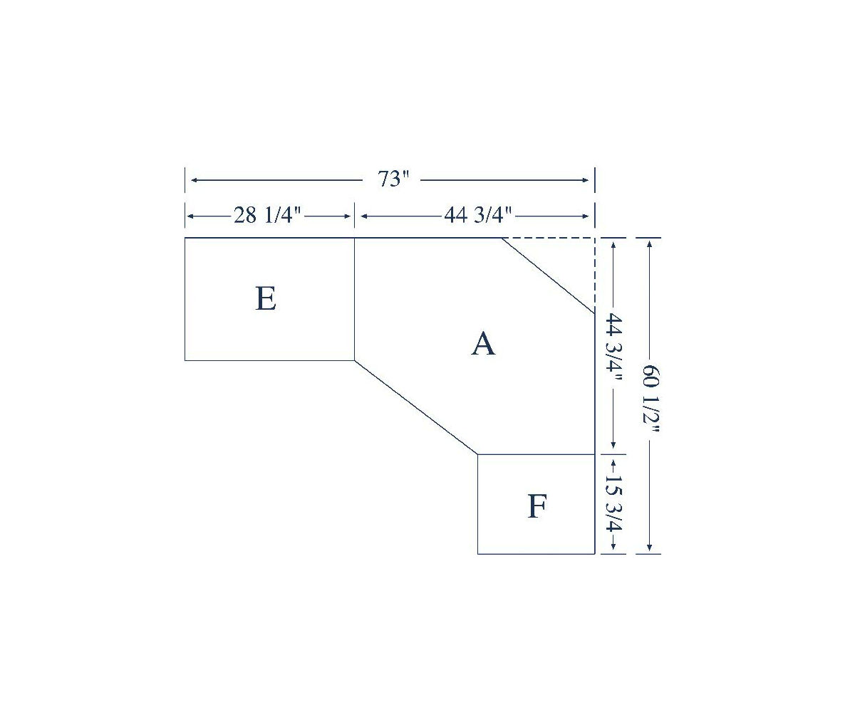 Dimensions: Left wall space: 73″W x 24″D Right wall space: 60½”W x 24″D Height: Ends 70″H; Corner 74¾”H