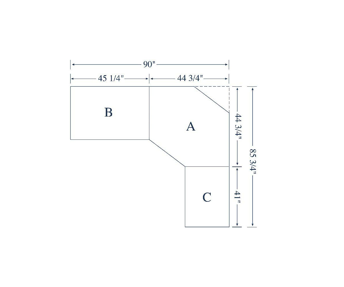 Dimensions: Left wall space: 90″W x 24″D Right wall space: 85¾”W x 24″D Height: Ends 70″H; Corner 74¾”H