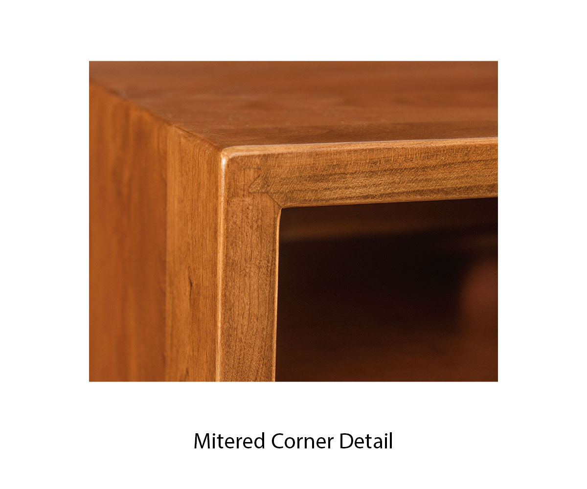 Features: • Locking mitered joints on the corners • Soft close door hinges • One adjustable shelf behind each door • Dovetailed drawers • Full extension drawer slides