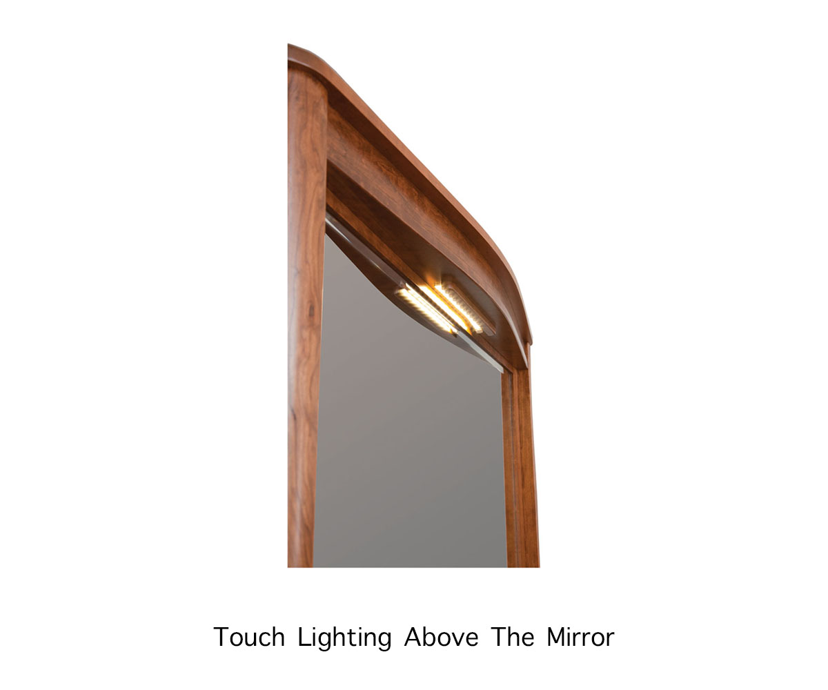 Features: • Touch lighting above mirror • Curved drawer fronts • Dovetailed hardwood drawers • Full extension drawer slides