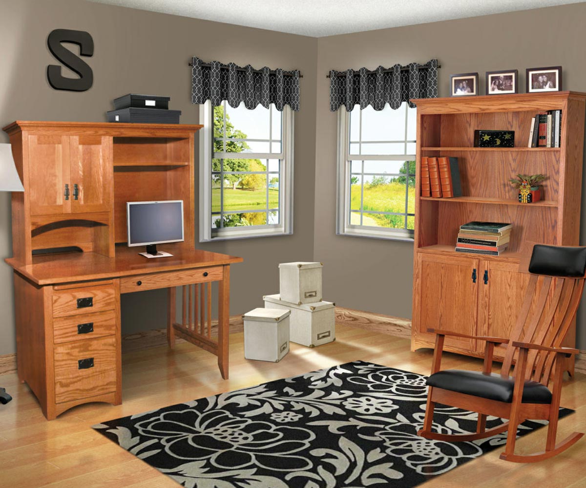 If you like the clean, simple lines of Mission furniture, then you’ll like our Mission style office furniture. It features inset panels on all doors, flat drawer fronts, black Mission hardware and an arched cut out base. As with all of our furniture, the Mission line is built from solid hardwoods and with the quality craftsmanship you’ve come to expect from A & L Furniture.