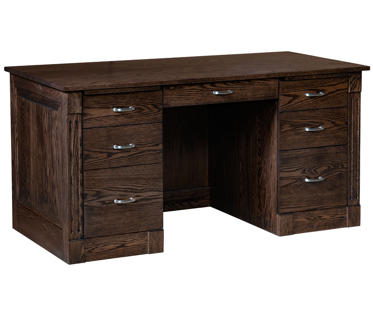 Desk Features: • Dovetailed drawers • Full extension drawer slides • Pullout writing board above each pedestal