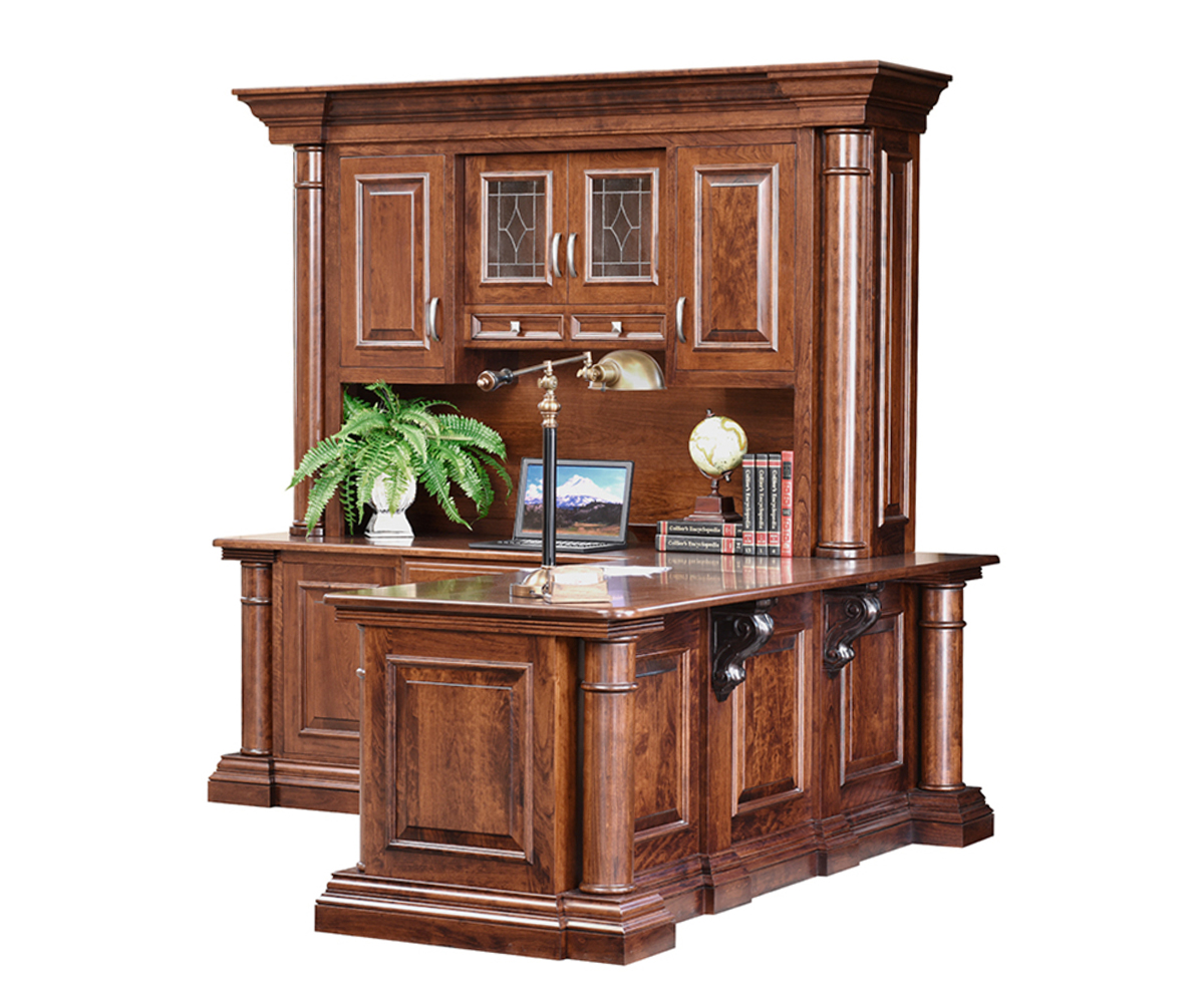 Dimensions: Base: 80¾”W x 80¾”D x 30½”H Hutch: 82½”W x 18¾”D x 51¾”H