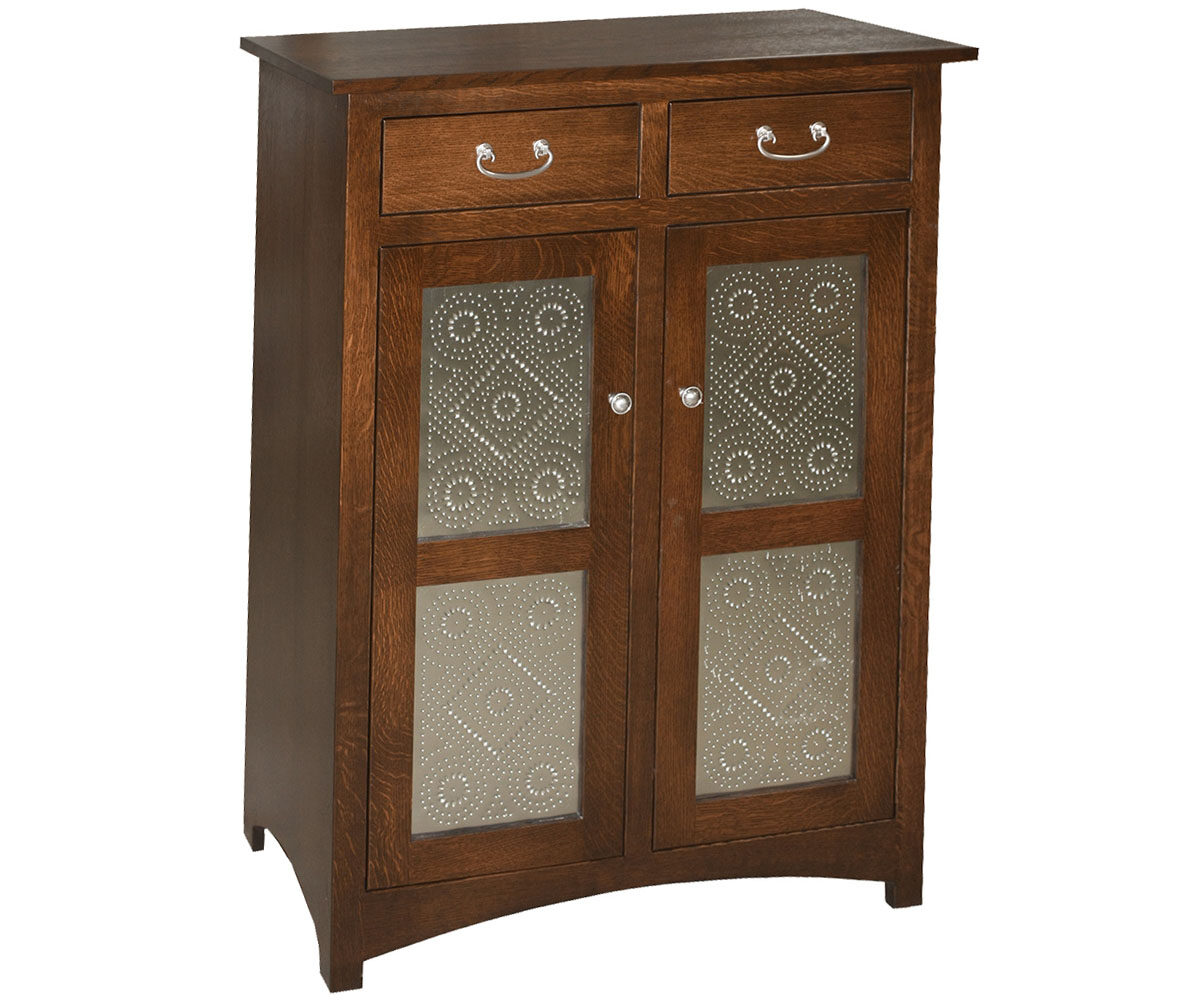 Features: • Dovetailed drawers • Full extension drawer slides • Two adjustable shelves behind the doors • Antique tin door detail