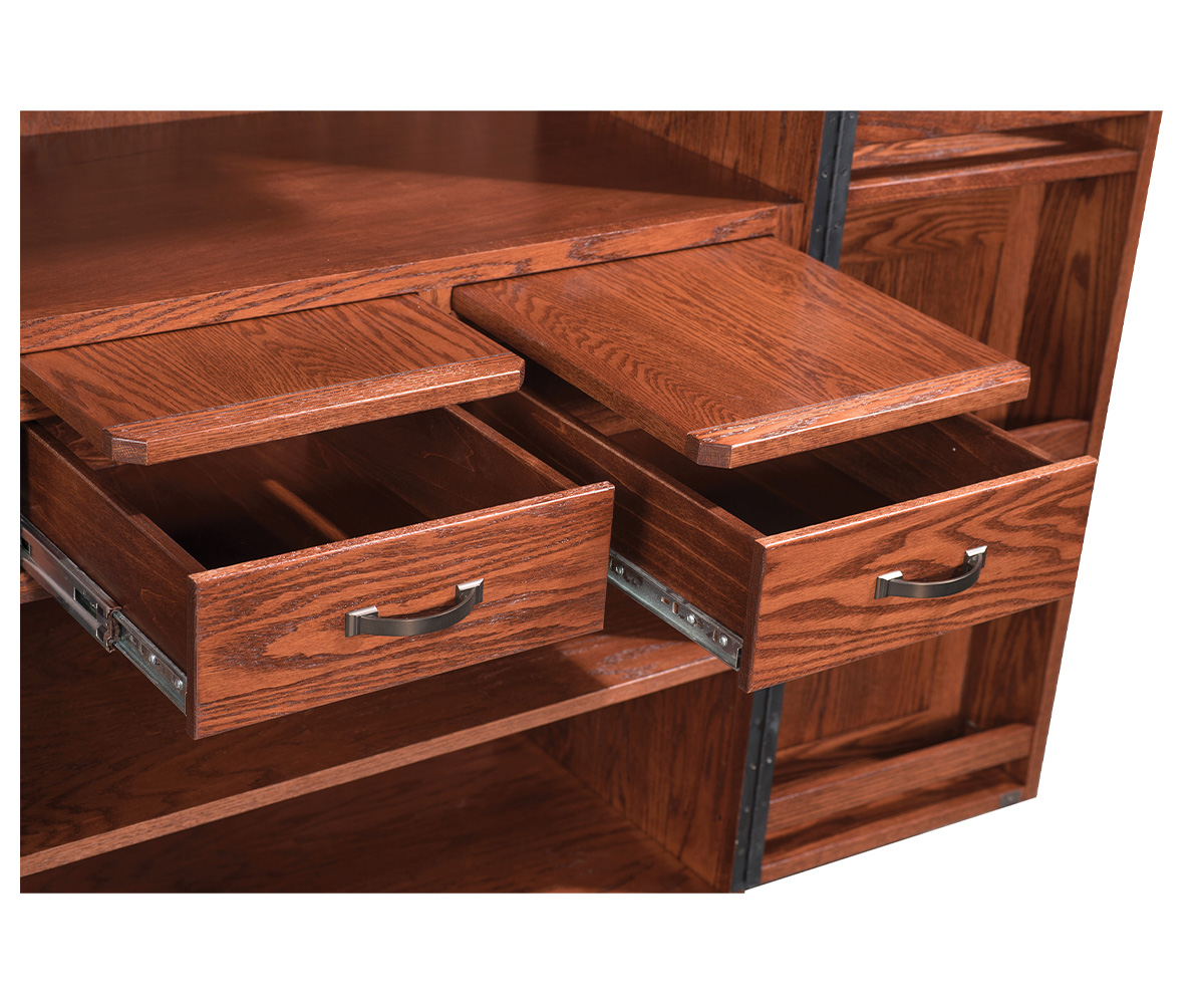 Features: • Wine glass holders in the top • Pullout shelf above each drawer • Dovetailed drawers • Full extension drawer slides • One adjustable shelf below the drawers